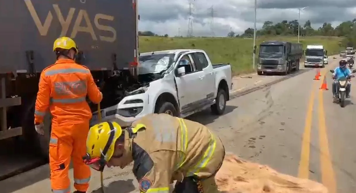 Segundo relatos colhidos no local, a caminhonete estava parada no acostamento e, repentinamente, teria arrancado em direção à traseira da carreta, colidindo contra o veículo de carga.