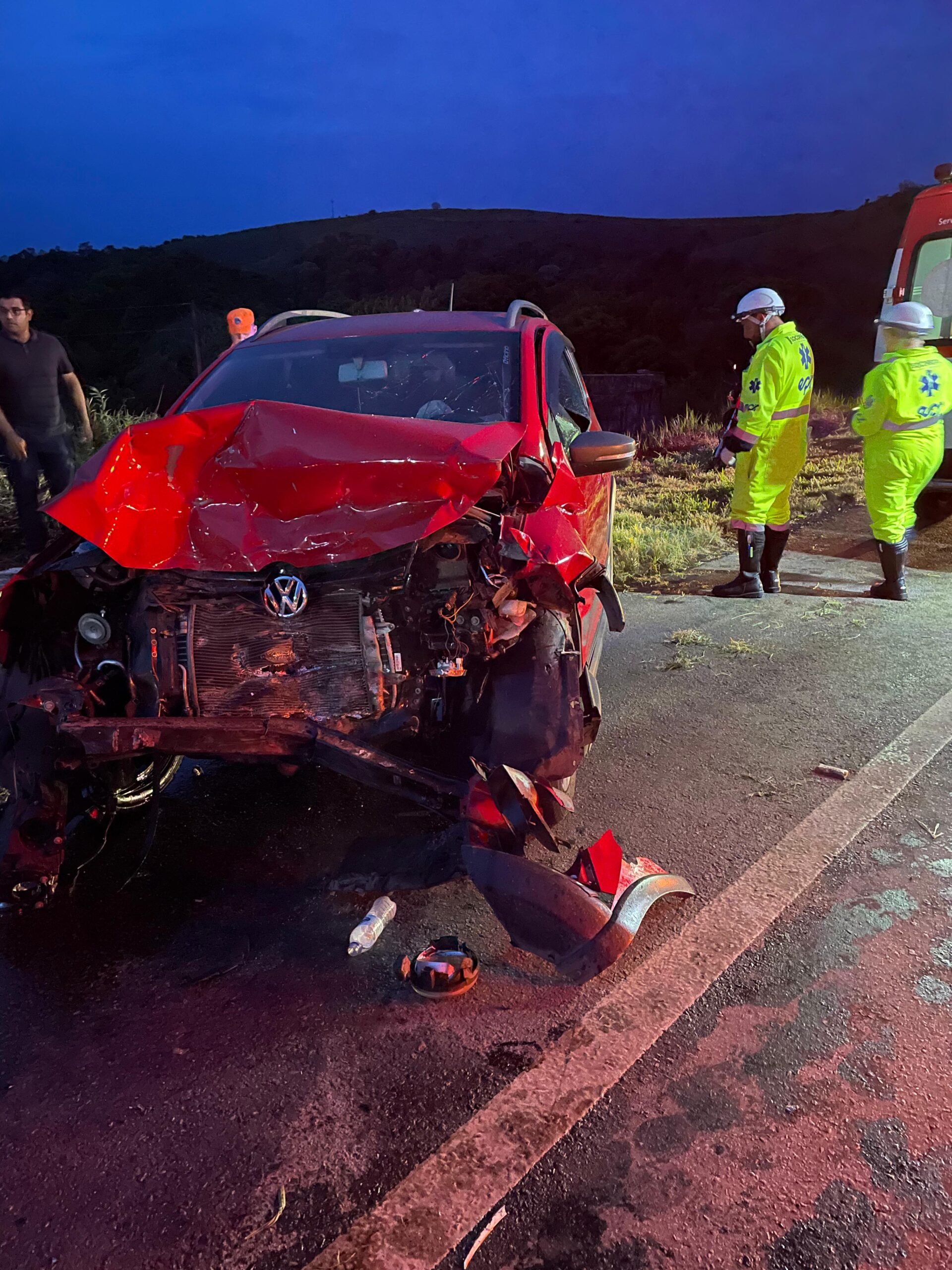 No Fox vermelho, a condutora, uma mulher de 36 anos, foi resgatada com vida, mas com ferimentos graves, e foi conduzida para a Santa Casa de Poços de Caldas pelo SAMU de Caldas. A passageira, uma mulher de 49 anos, foi levada para a Santa Casa de Caldas com fortes dores, a bordo da ambulância municipal.
