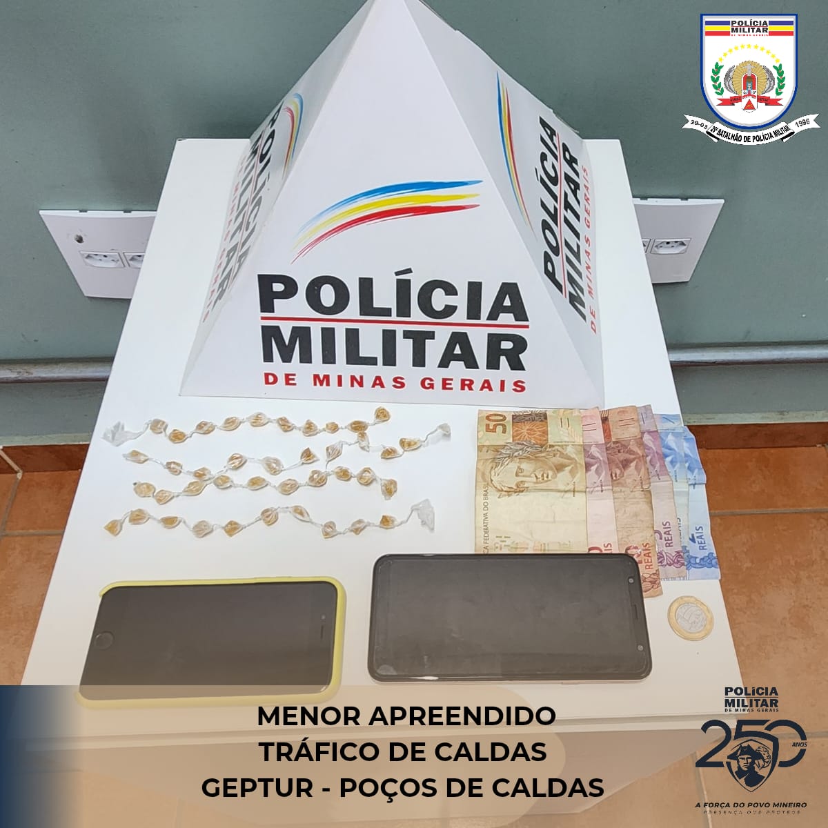 Um adolescente de 15 anos foi apreendido na última quinta-feira (12) pela Polícia Militar, no centro de Poços de Caldas, pelo crime de tráfico de drogas. O menor já possuía sete passagens anteriores pelo mesmo delito.