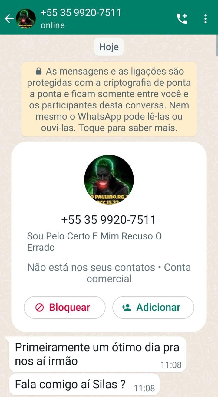 Após algum tempo de interação, o criminoso, ainda sob a fachada da suposta mulher, sugere a mudança da conversa para o WhatsApp, onde a comunicação continua.