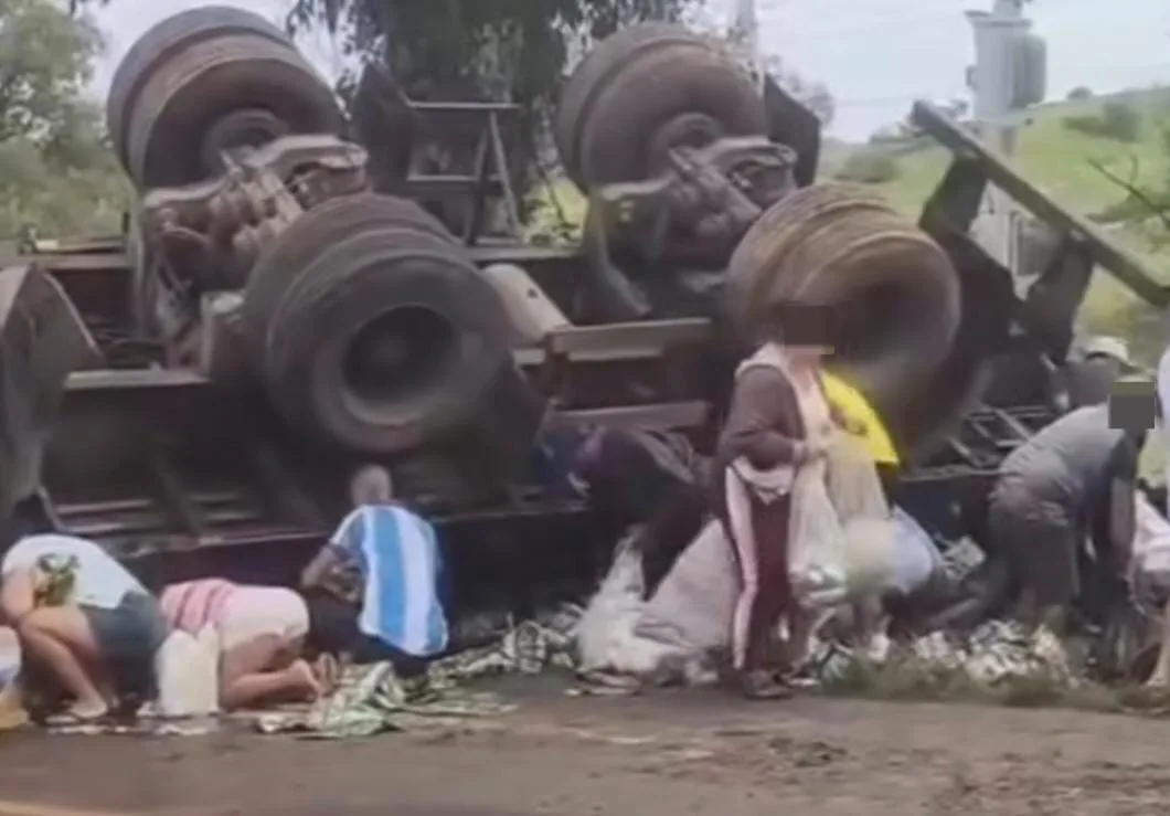 As circunstâncias do acidente e os possíveis desdobramentos relacionados ao saque da carga seguem sendo acompanhados pelas autoridades.