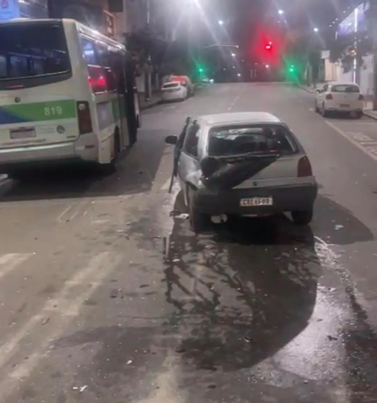 Acidente ocorreu na madrugada desta sexta-feira (13), no cruzamento das ruas Santa Catarina e Marechal Deodoro; motorista e passageiro do carro fugiram após a batida
