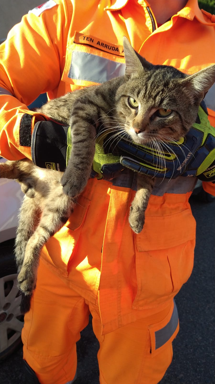 O Corpo de Bombeiros informou que o animal está sob cuidados e pede que, caso alguém reconheça o gato ou saiba quem é o tutor, entre em contato com a corporação para que ele possa retornar em segurança ao seu lar.