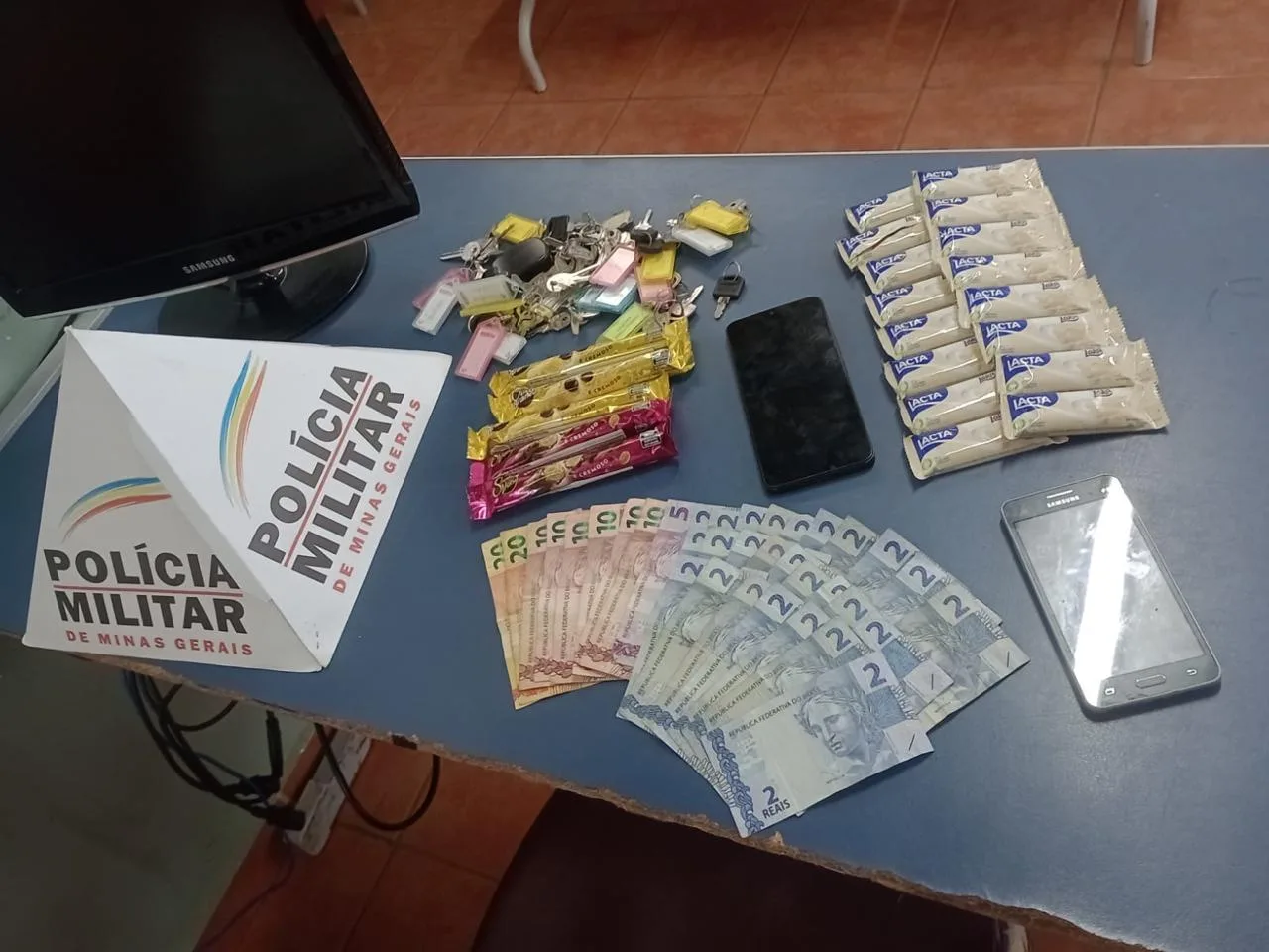 Durante a busca pessoal, os militares encontraram dinheiro, chocolates, celulares e a ferramenta utilizada no arrombamento. Questionado, o suspeito confessou que, após o primeiro crime, seguiu até uma pizzaria na Avenida Monsenhor Alderige, onde realizou um segundo furto, também mediante arrombamento.