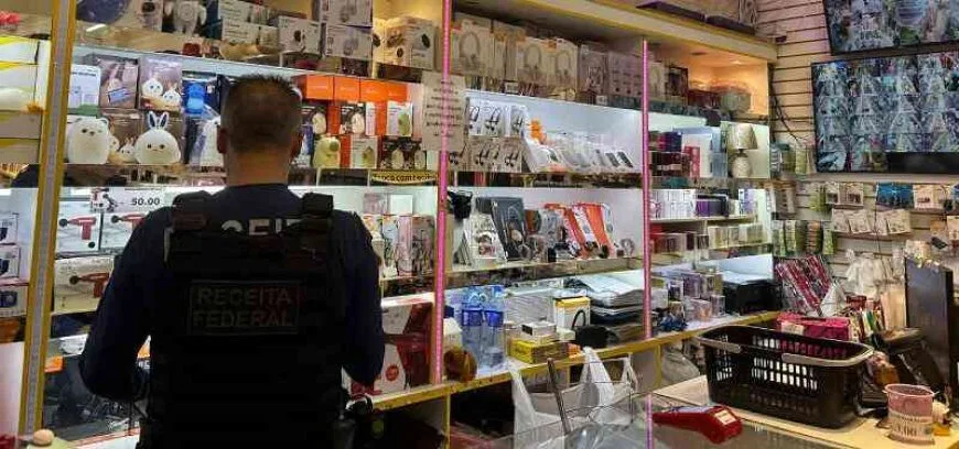 Ação da Receita Federal, em parceria com a Polícia Militar e o Procon, fiscalizou 11 estabelecimentos e identificou mercadorias sem nota fiscal e com selos falsificados da Anatel