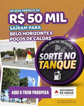 Um morador de Poços de Caldas está entre os ganhadores do prêmio de R$ 50 mil da campanha “Sorte no Tanque”, promovida pela Nota Fiscal Mineira. O sorteio especial de férias e Carnaval foi realizado na segunda-feira (2) e também contemplou um consumidor de Belo Horizonte com o mesmo valor.