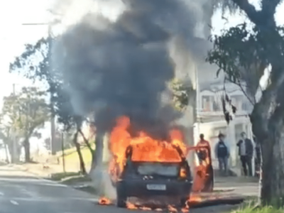 Carro pega fogo na Avenida Champagnat em Poços de Caldas.