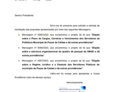 Prefeito retira projeto de lei que torna estatutário o regime dos servidores públicos de Poços de Caldas pela segunda vez