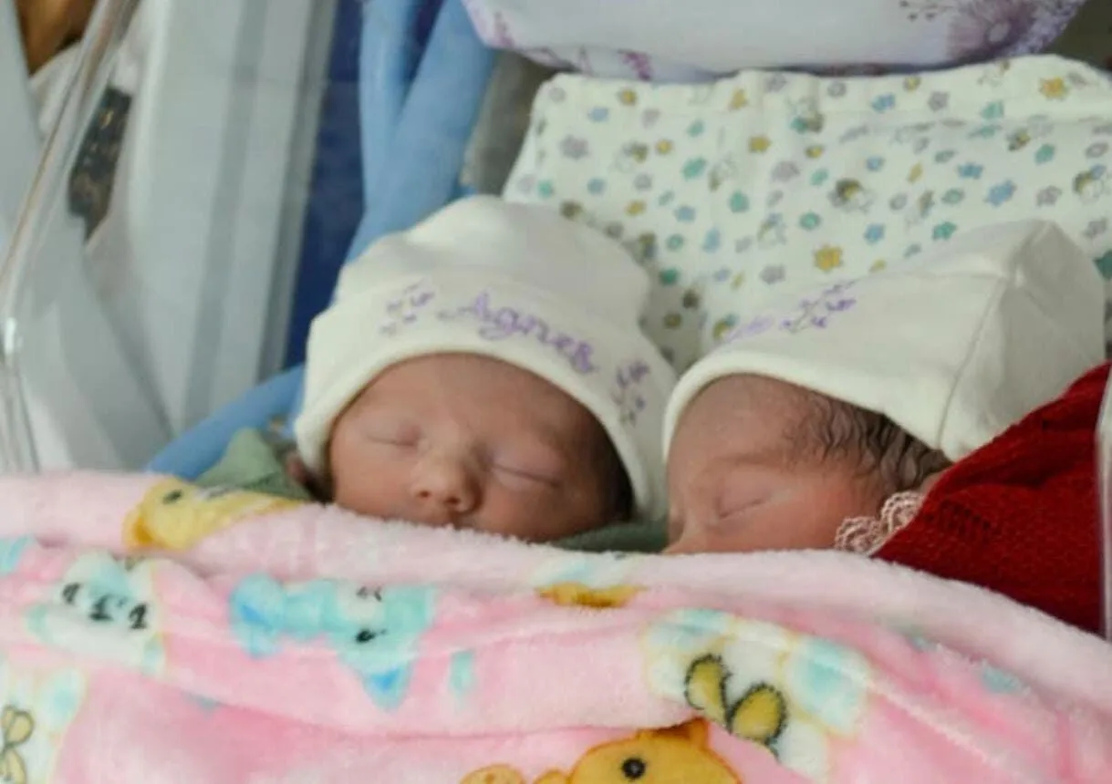 A indução teve início por volta das 9h. Agnes nasceu às 17h38 e Lilian às 17h49, em um intervalo de apenas 10 minutos, sem complicações durante o procedimento.