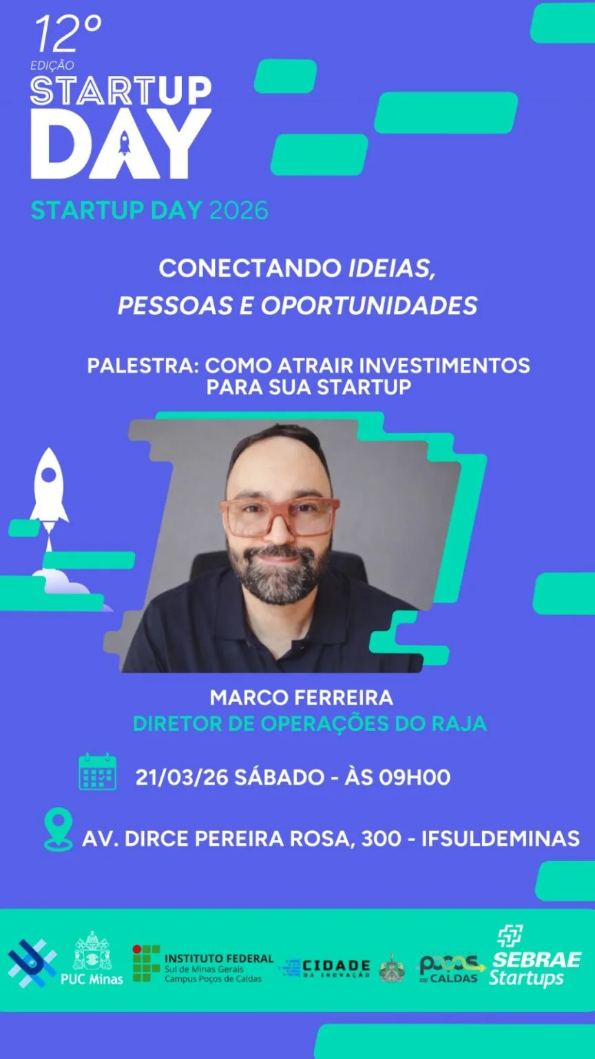 Um dos destaques do evento será a palestra “Como Atrair Investimentos para sua Startup”, ministrada por Marco Ferreira, diretor de operações da RAJA Ventures. A apresentação abordará estratégias e caminhos para que startups consigam captar recursos e expandir suas operações no mercado.