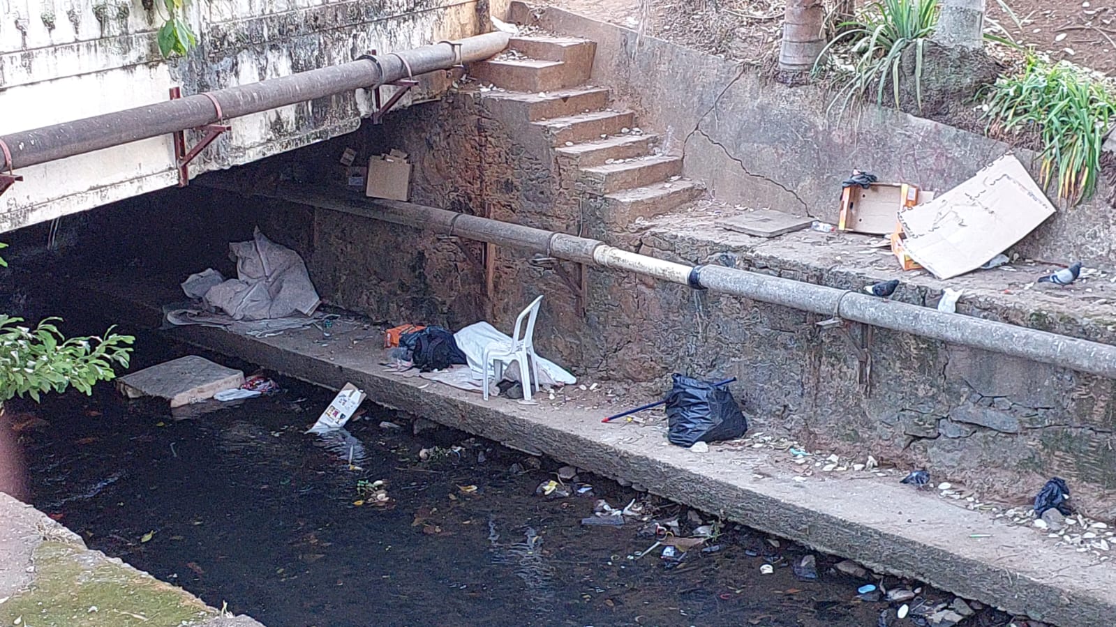 Segundo o parlamentar, denúncias recentes apontam que o espaço vem sendo utilizado como abrigo noturno, o que, além de representar riscos à saúde e segurança das pessoas ali alojadas, também compromete a estrutura urbana. Fotos anexadas ao requerimento mostram acúmulo de entulho, lixo, cadeiras e objetos pessoais junto à margem e dentro do rio, além de sinais de pequenos incêndios provocados pela queima de cabos e fios.
