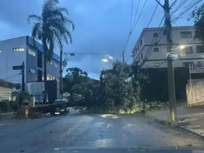 Fortes rajadas de vento derrubam árvores e afetam trânsito em Poços de Caldas 10/12/2025