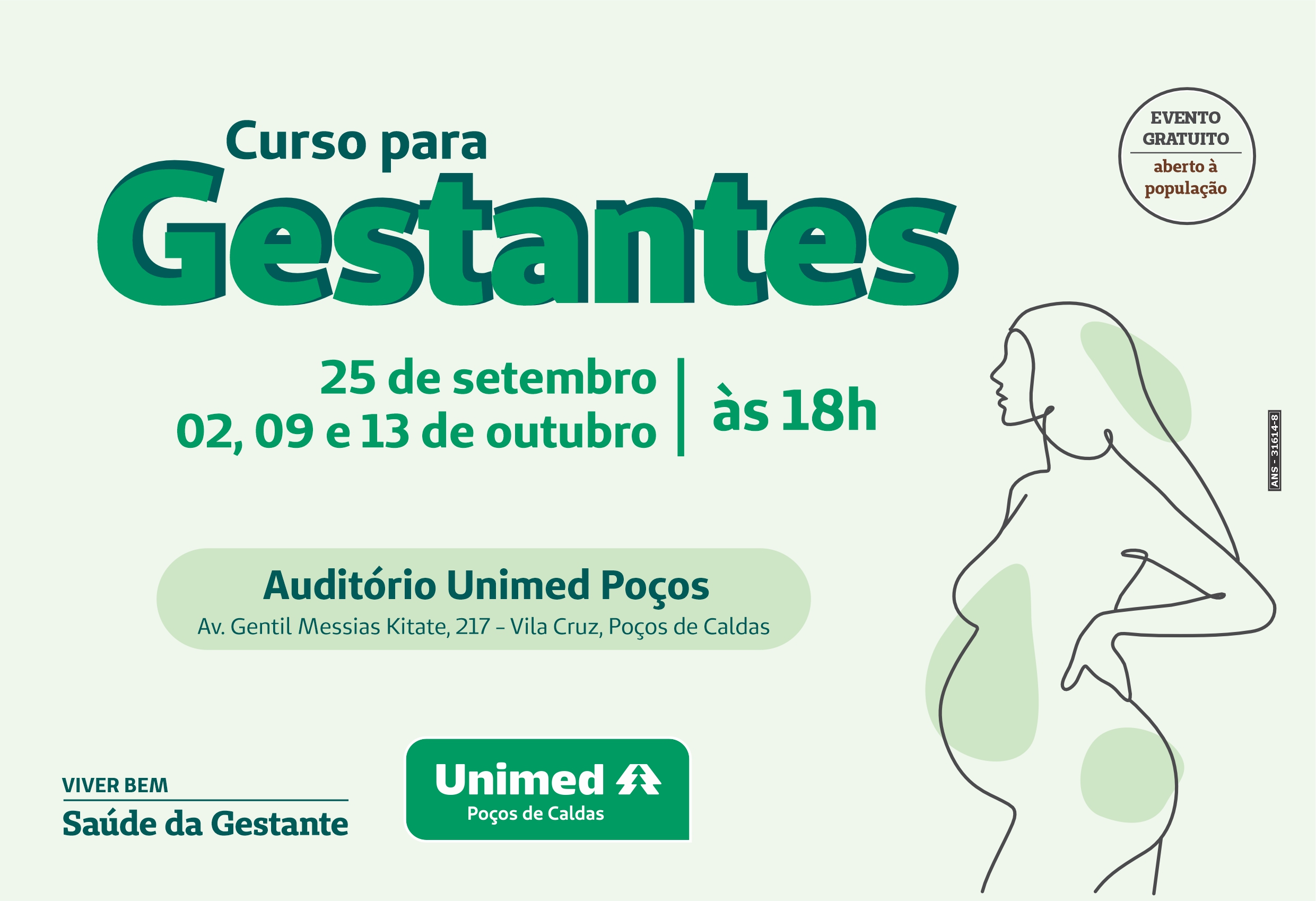 A Unimed Poços realizará, a partir de setembro, uma nova edição do Curso de Gestantes, evento gratuito e aberto à comunidade que oferece informações e orientações essenciais para gestantes e futuros papais. Os encontros acontecem nos dias 25 de setembro, 02, 09 e 13 de outubro, sempre às 18h, no Auditório da Unimed Poços (Av. Gentil Messias Kitate, 217 – Vila Cruz, Poços de Caldas).