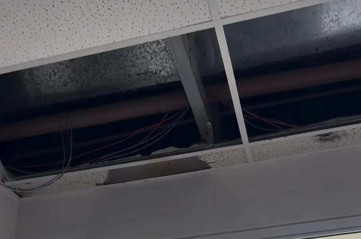 A vereadora também relatou que há pisos quebrados ou soltos e paredes sem revestimento, o que, segundo ela, estaria relacionado à falta de manutenção no telhado do prédio.