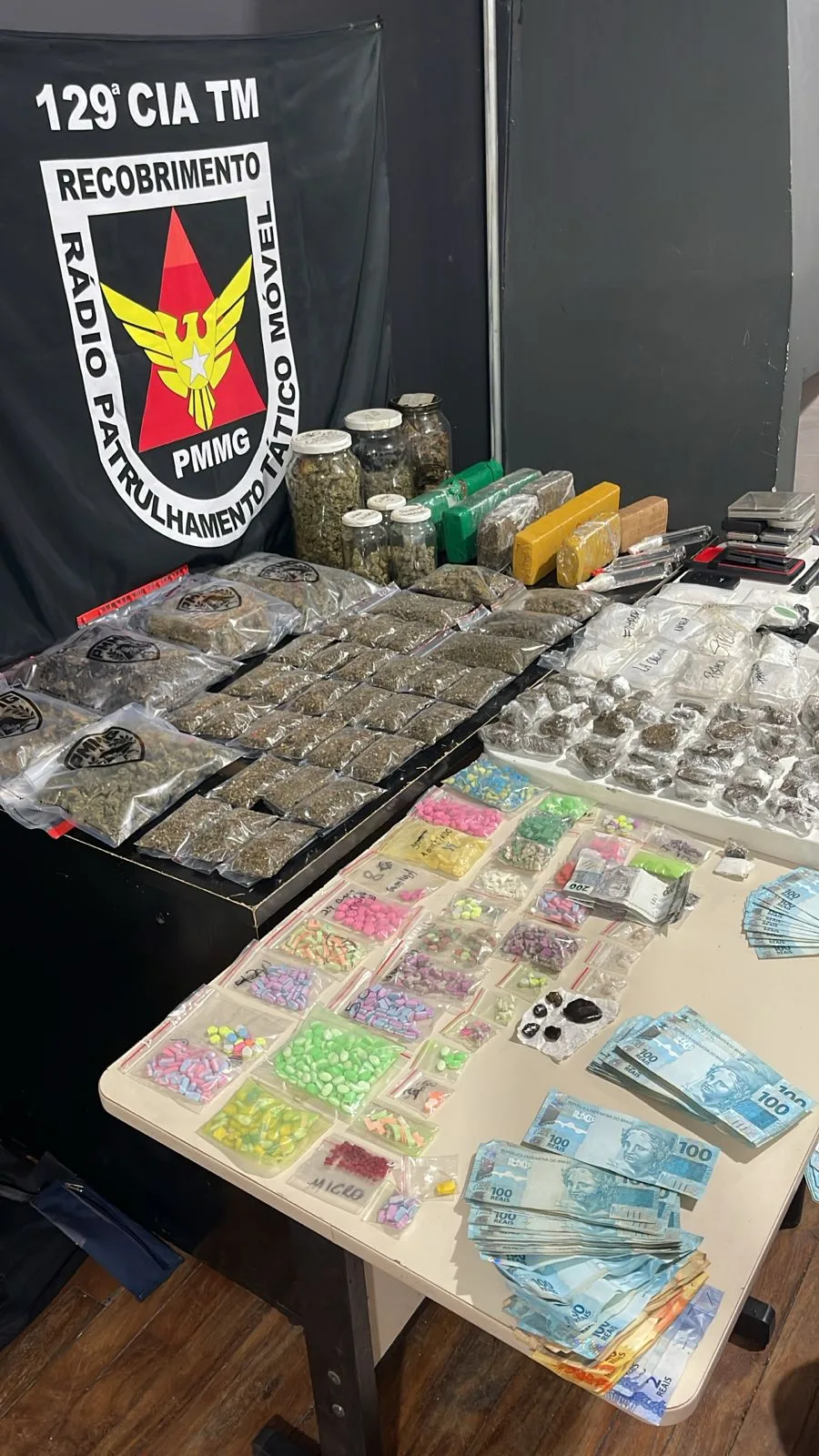 Uma operação da Polícia Militar de Minas Gerais realizada na noite de quinta-feira (16) resultou em uma grande apreensão de drogas e na prisão de dois homens, de 21 e 23 anos, em Poços de Caldas. A ação teve como alvo um esquema de tráfico que, segundo a polícia, utilizava inclusive o sistema de “delivery” para distribuição de entorpecentes.